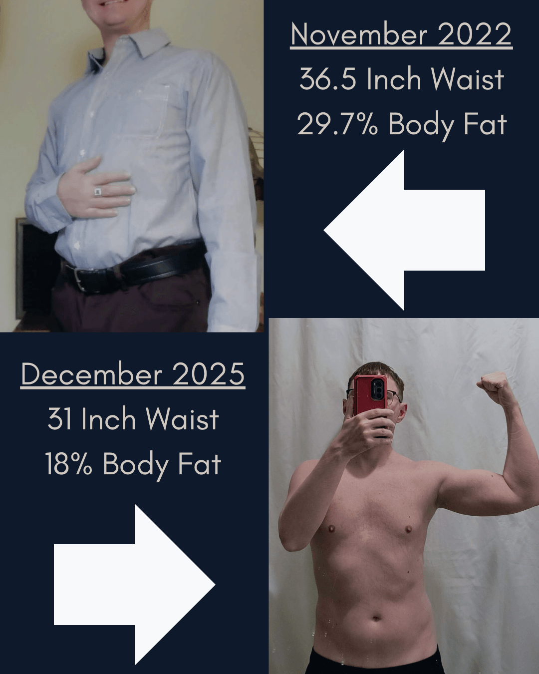Today, I weigh about the same, but my body fat is closer to 18%.